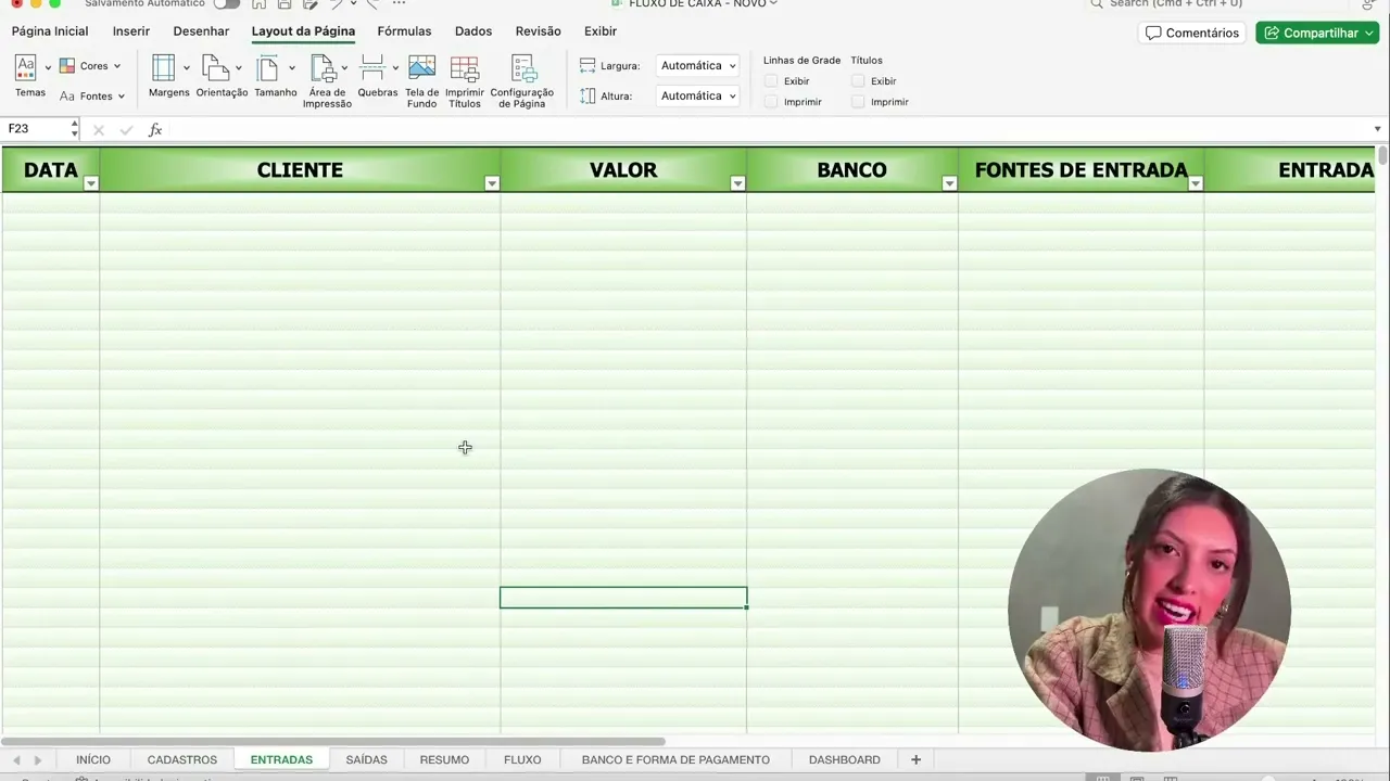 000 caiu para 12 em um mês por causa das férias aí você me diz se ela não tem um planejamento se ela não tem um dinheiro para isso um 13º uma férias um caixa como que ela vive ou ela reduz aí vira Bola de Neve mas não é esse o foco aqui tá mesma história aqui é aplicação e eu coloquei um imposto como variável como eu sei na se meu imposto varia ou não se você paga um percentual de imposto sobre o seu faturamento ele varia se você paga um valor fixo ele não varia tá Às vezes um mei ele paga um valor fixo é 70 é 70 agora quando é porcentagem um simples nacional enfim é uma porcentagem e aí você depende do faturamento Então vamos lá agora agora nas entradas como você vai fazer suponha então que você é um psicólogo você tem alguns pacientes fixos e eu vou fazer isso com você vamos supor então que a gente tá começando lá em janeiro um do um aí aqui você vai colocar o seu paciente então a gente vai colocar a Maria e a Maria ela te paga R 600 por mês tá ela te paga sempre no Banco Santo Ander ela paga por pics e a Maria ela é uma paciente fixa o estatus dela tá recebido então dia 1 do 1 já tá recebido mas a Maria ela vai continuar com você provavelmente é longo rápido sobre como utilizar uma ferramenta do Excel que Vai facilitar a sua vida e eu não mostrei ela anteriormente nessa aula vamos supor Então vamos só recapitular aqui Maria vamos supor que ela pague um do um todo dia um tá vamos supor que ela pague todo dia um valor de R 800 por mês banco no Bank PX Ela Faz terapia o status a receber e dre Janeiro que que você vai fazer para facilitar ainda mais sua vida aqui que que a gente quer a gente quer que o Excel já puxe um do dois um do três um do quatro um do cinco eu não tinha falado isso para vocês antes eu tinha falado para você ir arrumando a data mas foi por só por descuido mesmo porque tem uma parte uma forma de fazer isso muito mais fácil então você vai só selecionar então clica com o mouse aqui puxa para para cá seleciona tudo aí você vai vir aqui no cantinho aqui e você vai ó tá vendo que do de branco ele passou para pretinho o curso Então você vai puxar por 12 meses até o final do ano então 1 2 3 4 5 6 7 11 12 na verdade eu puxei um a mais 12 tá aí se a gente deixar normal olha o que ele vai fazer um do um dois do um ele arruma pelo dia mas a gente não quer que arrume pelo dia a gente quer que arrume pela pelo mês então que que a gente vai fazer a gente vai puxar 12 aqui E aí você vai vir aqui tá vendo que pareceu esse negocinho branco e você vai colocar preencher meses pronto automaticamente ele vai preencher pra gente um do um um do dois um do três e vai manter o dia igual porque a Maria ela paga todo dia um simples assim tá quando você vier aqui no fluxo ele vai aparecer ó Janeiro em todos os meses do ano ele vai estar aqui a receber para você no dia um que seria esse valor da Maria no resumo mesma coisa ele vai aparecer para você também terap p é 800 800 800 em projetado porque está a receber simples assim você pode fazer isso também nas saídas Então vamos p o aluguel a energia que você paga todo mês você já pode lançar puxar dessa forma deixar lançado pro o ano todo e você tem esse controle também pelo fluxo e pelo resumo Nati não quero planejar pro ano todo vou fazer mesa a mesa Sem problema nenhum Você lança cada um mesa a mesa Então vamos supor que você venha aqui e você lance mesa a mesa Então eu tenho mes um eu tô no mês um tá mês um do um eu tenho o Felipe e eu vou ele me paga 400 no santo Ander aqui por P paciente fixo e ele na verdade ele não me paga dia um ele me paga dia 20 do1 21 do1 todo dia dia 21 ele paga Fechou então você pode lançar só assim aí no próximo mê Você lança de novo Felipe 21/2 Felipe tá e você vai lançando Sem problema nenhum saídas vamos simplesmente supor que já tá lançado aqui algumas saídas como aluguel então eu lancei o aluguel para vários meses do ano Condomínio prolabor E aí por diante e aqui você vem em resumo que ele já me mostra já entrou 2. 400 em janeiro mas eu ainda tenho 400 para entrar em Fevereiro eu tenho 2400 é por isso que eu digo para você lançar pro ano todo porque você já vê aqui o valor planejado ó em Maio eu tenho r800 para entrar em Junho eu tenho r800 E aí por diante o fluxo mesma história você vem aqui no fluxo vamos supor que eu tô em janeiro agora né ele vai vai me mostrar ó já recebi r400 meu saldo atual é r400 vamos supor que você tinha começou o mês de novembro de Janeiro com 2.