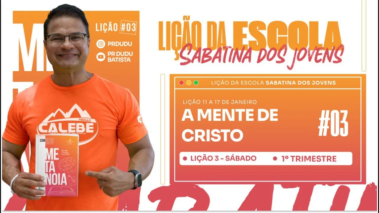 [Música] E aí jovem Vamos estudar a lição sábado dia 11 de janeiro e hoje o nosso foco está voltado para o tema dessa semana mente de Cristo Isso aí é um ideal é um alvo que todos nós devemos correr atrás termos a mente de Cristo ideal de vida simplesmente maravilhoso Agora se liga só no que eu vou te dizer você Costuma se olhar no espelho óbvio né todo mundo Se olha no espelho você não vai sair de casa sem dar um trato na carcaça ao se olhar no espelho eu te pergunto você gosta do que