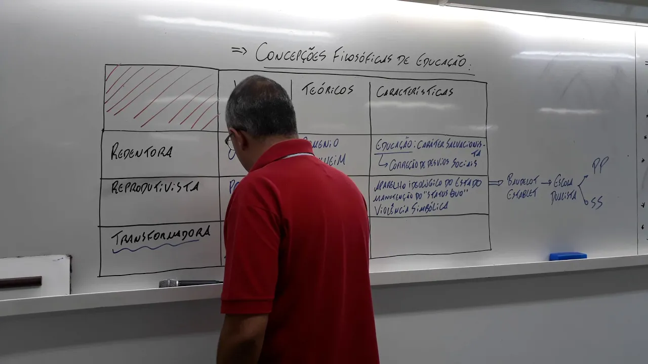 vou mostrar vídeo 3 sobre as concepções filosóficas vamos falar agora dessas aqui ó transformadora a transformadora que tem como grande expoente a figura de paulo frio então paulo veio criticar os credores por dizer o seguinte os setores eles são tão otimistas a ponto de ser ingênuos então ele dizia sobre o otimismo ingênuo da pedagogia redentora e também criticava o ciclo de vistas por dizer o seguinte os produtivistas são tão pessimistas que acabam imobilizando a sociedade então ele era contra esse pessimismo imobilizador da corrente reprodutivo vista então a concepção transformadora dizer o seguinte que mesmo no