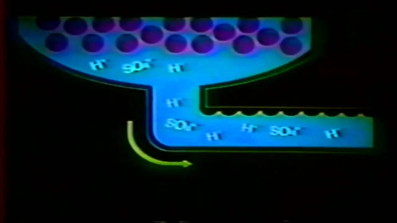 o estágio dois regeneração de ácido o que acontece nesse processo é o oposto do que ocorre durante o serviço normal lembre se que a resina catiônica começa com um milhão de hidrogênio ligado frouxamente durante o serviço ela abandonou o hidrogênio eo que ela - prefere agora a resina catiônica ter a alimentação forçada para se restabelecer com um milhão de hidrogênio o meio mais comum para essa alimentação forçada é o ácido sulfúrico h2so4 e é geralmente introduzido em uma concentração de dois a seis por cento a percentagem real depende da quantidade de cálcio na água de