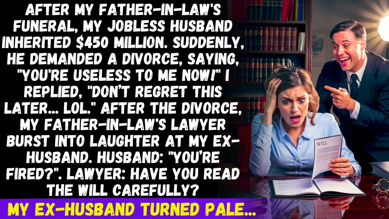 I looked at my dad's bank account and saw nearly $600 million in it I thought to myself this money is all mine now I don't need you anymore after my kind father-in-law passed away I was still grieving when my husband came to me and casually drops the news that he wanted a divorce it turns out he was only showing his true colors after getting his hands on the $600 million inheritance from his father he saw me as nothing more than an 8 TM just waiting for Dad to pass away so he could live a lavish