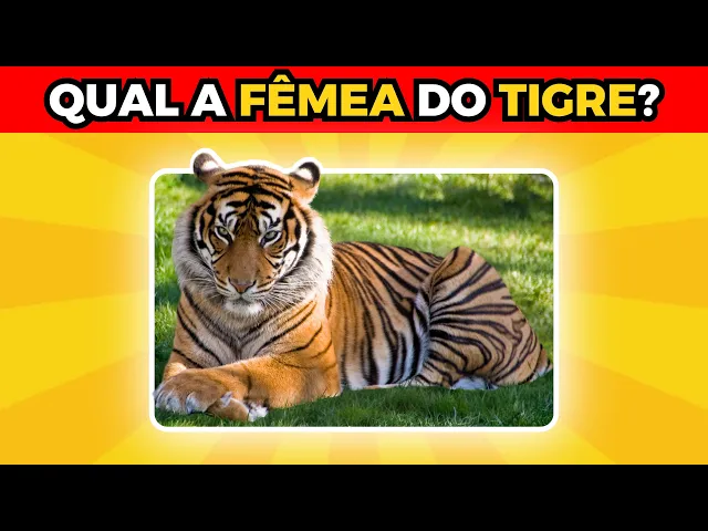 da lebre é o lebrão número 25 qual feminino do urso acertou quem falou ursa número 26 qual feminino do macaco é a macaca número 27 Qual o masculino da mula é o burro número 28 qual a fêmea do papagaio [Música] é a papagaia número 29 qual feminino do [Música] Pardal é a pardoca ou pareja número 30 qual a fêmea do veado é aviada número 31 Qual o feminino do Tigre É a tigresa Quantos você acertou deixe nos comentários assista mais vídeos clicando nos vídeos abaixo e Não esqueça de se inscrever no canal se ainda não