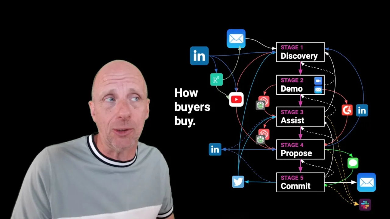 or something like that right oh your document was signed email essentially what really happens is this customers not necessarily start at the same spot they don't necessarily go in one direction and they're not necessarily follow the process that you have this is the realization of how customers really are buying and what we're doing is we are forcing them to buy this way we're forcing all you know it doesn't matter you've done your research i need to do my research as a seller so why don't i put you through the discovery part of the business like
