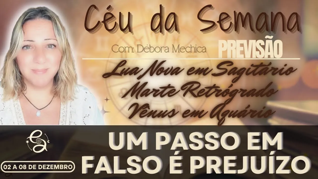 Olá pessoal aqui é Débora mexica do encontros astrológicos e hoje estou aqui para dar uma olhadinha no céu da semana para essa semana que vai do dia 2 ao dia 8 de dezembro de 2024 Quais as principais energias para essa semana que a gente tem pela frente antes eu quero me desculpar com vocês porque eu tô atrasada com o vídeo do céu da semana mas o meu cachorrinho não tá muito bem e a gente tá tendo que cuidar dele um pouquinho mais e hoje segunda-feira eu consegui o intervalo aqui de 2 horas da tarde até