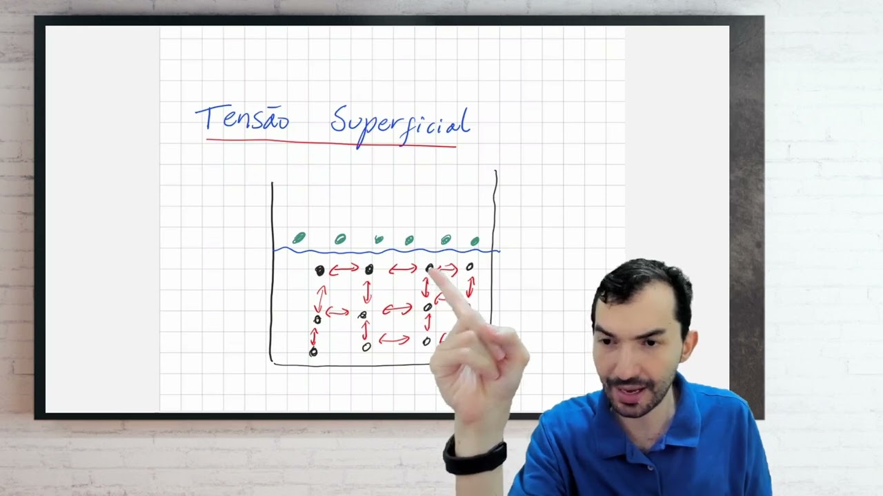 também legal né é assim que forma a tensão superficial e a gente consegue explicar essas figuras que nós vimos aqui bom coisas mais que a gente consegue observar dá uma olhadinha aquela esfera e super bacana a gente analisar ela é formada pela tensão superficial né a definição atenção especial quimicamente falando ninguém vai perguntar isso mas é interessante saber como sendo a força para que você aumente a área superficial aumentar a supercell significa afastar as moléculas umas das outras né a tensão superficial diminui a área superficial é para deixar mais próxima e a tensão superficial é