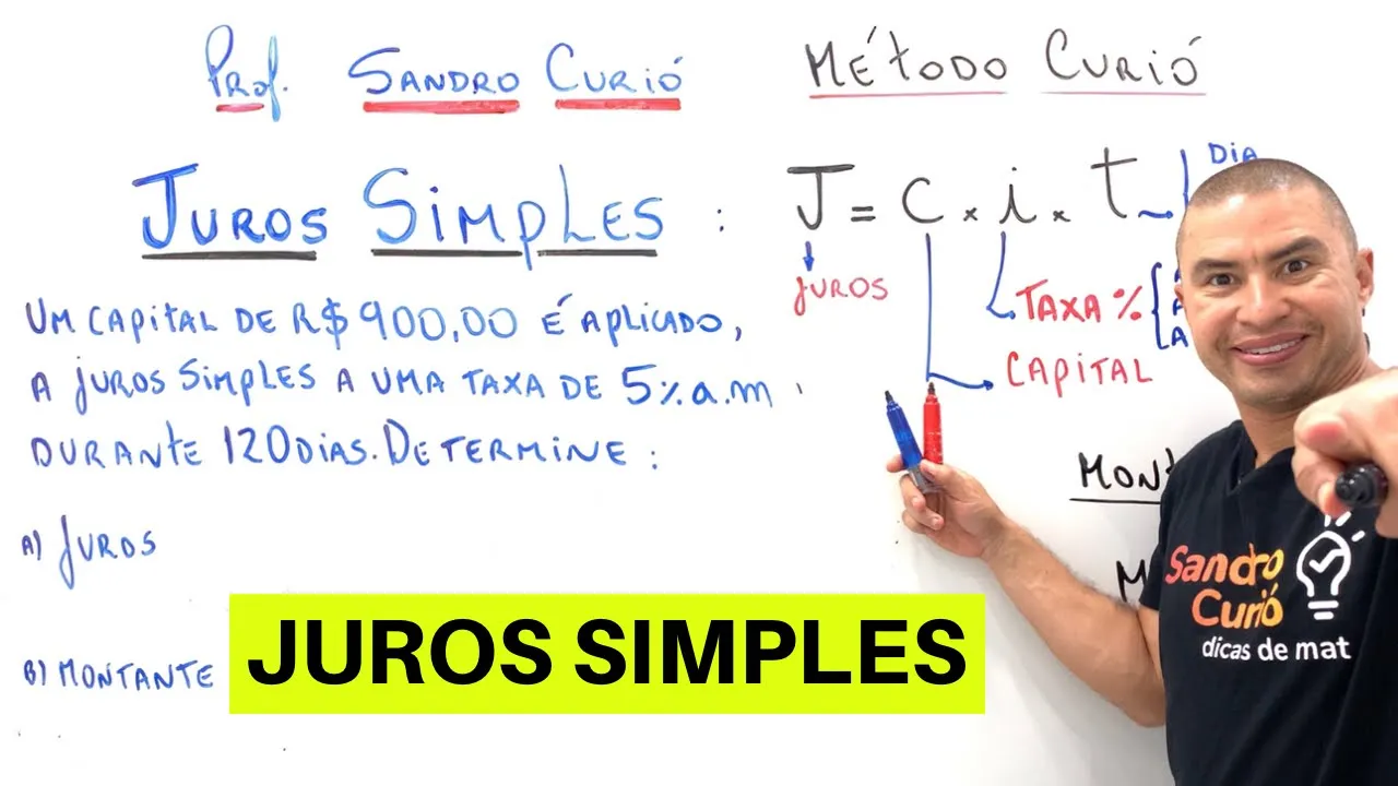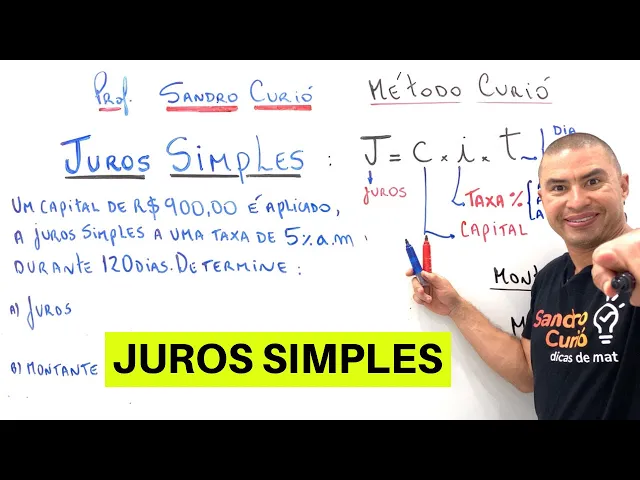 fala Friends deu play no vídeo eu te convido até o final você vai aprender juros simples com teoria e apenas um exercício não esqueça tem um curso completo de matemática esperando você na descrição agora vem vamos nessa juros simples curió Qual é a fórmula de juros simples viu juros simples você vai aplicar City juros simples City C de capital e a taxa ter ao tempo Lembrando que a taxa ela pode ser ao dia ao mês ou ao ano e o tempo também dia mês e ano Então a primeira observação que eu vou fazer para você
