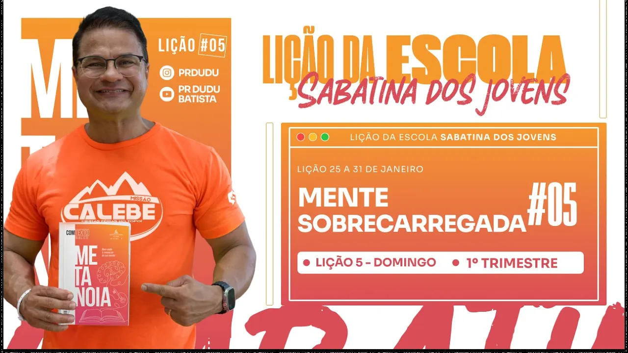[Música] E aí jovem Vamos estudar a lição domingo 26 de janeiro estamos super aqui ó Together juntos para contribuir para o evangelho ser espalhado para todo mundo em Nossa geração Deixa Deus te usar compartilhe aí a lição da Escola Sabatina jovem para todo mundo nas tuas redes sociais não esquece não esquece segue @ jovens adventistas Brasil @pr Dudu estamos super juntos nessa tarefa maravilhosa de nos alimentarmos e alimentar outras pessoas também com esse conteúdo da palavra do senhor expressa através da lição da Escola Sabatina jovem e olha neste super domingo abençoado pelo senhor temos aqui