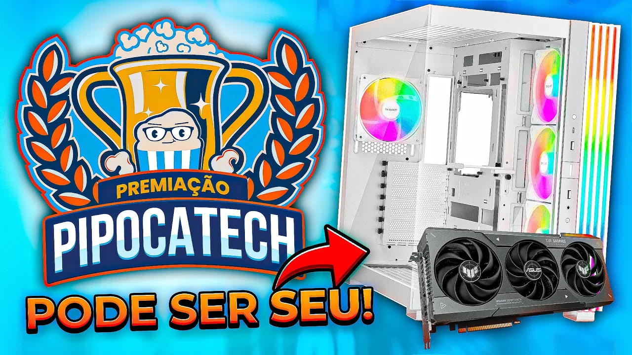 quem acompanha o canal já sabe que todo final de ano né e começando o ano que vem a gente tem uma ocasião muito especial que virou uma tradição aqui no canal que é a premiação pipoca Tech Tá mas o o que seria Exatamente isso aqui basicamente pessoal a gente faz uma votação nas marcas aí que vocês gostam bastante e a gente aproveita né que a gente tem uma boa relação com várias marcas aí no segmento Gamer e pede para elas né darem uma ajuda pra gente montar um pczão para sortear para vocês só que antes