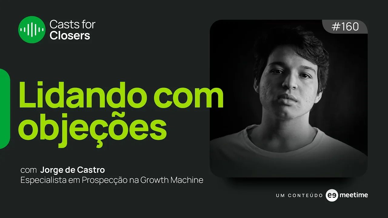 [Música] [Música] Olá pessoal tá no ar mais um episódio do cast for closer seu podcast para dominar em sites e pausa dramática colocar suas metas no bolso para você que nos ouve pela primeira vez para você que não conhecia esse slogan esse podcast é feito pela metime referencia brasileira em sites o software Dame time organiza o trabalho de SDR e vendedores na prospecção para o teu time agendar mais oportunidades comerciais mais pipeline de vendas para você entender mais acessa meime.com.br e o tema do episódio de hoje é lidando com objeções no processo comercial a gente