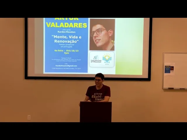 prezados amigos e amigas uma boa noite para todos nós que Deus nos abençoe com a sua paz que sintamos todos envolvidos pela presença espiritual de Jesus que irradia do seu coração embalando a todos nós Num clima de esperança de alegria de contentamento que é esse próprio espírito da Boa Nova que vamos com o qual vamos nos conectando aqui então eu gostaria de agradecer antes de mais nada pela oportunidade pelo convite que nos foi feito de estarmos aqui pela primeira vez em Houston já recebendo o abraço e o carinho de tantos corações queridos e certamente Tendo