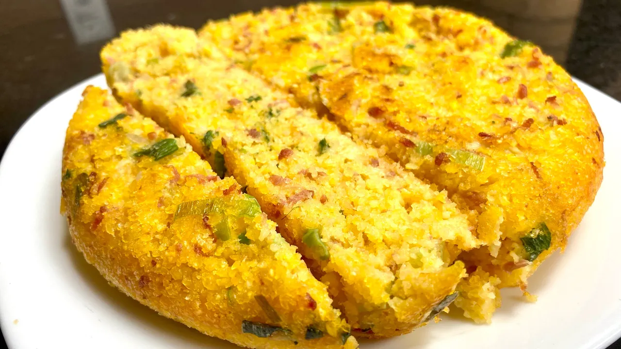 e levar para o fogão vou colocar uma colherzinha de sopa Rasa de fermento e misturar é somente isso e tá pronto aí a nossa massa do nosso cuscuz de frigideira vamos levar para frigideira agora né claro prontinho Pronto agora vamos levar lá para o fogão fogo aceso vamos dar uma abaixadinha aqui e vamos tampar e daqui a pouco nós estamos de volta tá é bem rapidinho Olha eu já dei uma viradinha nele agora é só a gente esperar o outro lado Dourado tá bonito né Arthur Então vamos esperar gente é rapidinho fica pronto está com