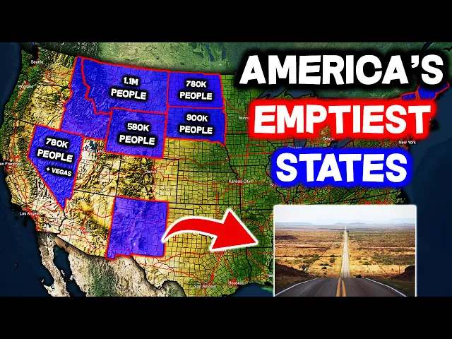 02 million actually grew by 1. 4% over the past year number five South Dakota South Dakota home to walr one of America's most famous cultural landmarks wait walr what no I met Mount Rushmore sorry after passing literally 200 Billboards talking about the place wal drug is most certainly not worth the hype but impossible to forget damn marketing schemes the fact that wal drug is the most exciting thing for hundreds of miles however says a lot about South Dakota it's vast far from everything and virtually empty not to mention really cold and those are the exact reasons why it's the fifth smallest state by both population and population density with only 999,000 residents to put that into perspective South Dakota surface area is 177% larger than Florida's yet it has fewer residents than the city of Jacksonville historically most of the Great Plain States had no need for major city centers as their populations were mostly Rural and economies mainly Agricultural and Mining based but driving through the fields of South Dakota feels so much lonlier than in Nebraska or Kansas there's just less everything houses Farms truck stops and semblances of civilization number four North Dakota think of every problem plaguing South Dakota now multiply them by 10 add some oil and boom you've got North Dakota home to the darkest coldest winters in the lower 48 in addition to hot and humid Summers and terrible flash flooding during the Spring it's no wonder less than 780,000 residents live in this lonely State especially since South Dakota is prettier with better weather and tax laws and a more Diversified economy North Dakota is also incredibly isolated from major Urban centers and thus supplies and services historically settlers who traveled West didn't stop until they reached the coast where the land was more aable resources more rich and the climate less harsh so North Dakota never had large enough permanent population numbers or industry to Warrant big cities and even though there was plenty of cheap Farmland many farmers who could have settled in North Dakota in the late 18 and early 1900s instead chose to settle further north in the Canadian prairies this is due to the Aspen Parkland belt a unique ecosystem in the plains which has an abundance of rain trees and fertile soil heck just the city of Winnipeg 70 Mi north of North Dakota has a population greater than the entire state number three Alaska Alaska is the Big Daddy of States now like literally it's so big that if you cut it in half either part would still be by far the largest state yet despite spanning 665,000 square miles most of it is inaccessible and isolated not only is it a 40-hour 2200m drive through remote Canada to the nearest non- Alaskan US city even towns within Alaska are hundreds of miles apart and many of the largest communities aren't accessible by car in fact there are barely 16,000 Mi of Road in the entire State that's 5,000 Mi less than Connecticut and you could fit 120 Connecticut in Alaska yeah they ain't kidding when they call it the Last Frontier a land where Grizzlies moose and wolves walk around town and where vast Untamed Forest coasts mountains and Tundra combined to make up an area larger than Mongolia but for all its beauty the Wilderness is also a Harsh Mistress a mere 733 ,000 residents are willing to Brave the desolate long dark and frigid Winters where- 40 Fahrenheit and less than 4 hours of daylighter common and while Mongolia is both the emptiest and least densely populated country in the world with just 5. 2 people per square mile Alaska's population density is 1/4 of that and if you exclude Anchorage the state's only real City the population density becomes a poultry 0.