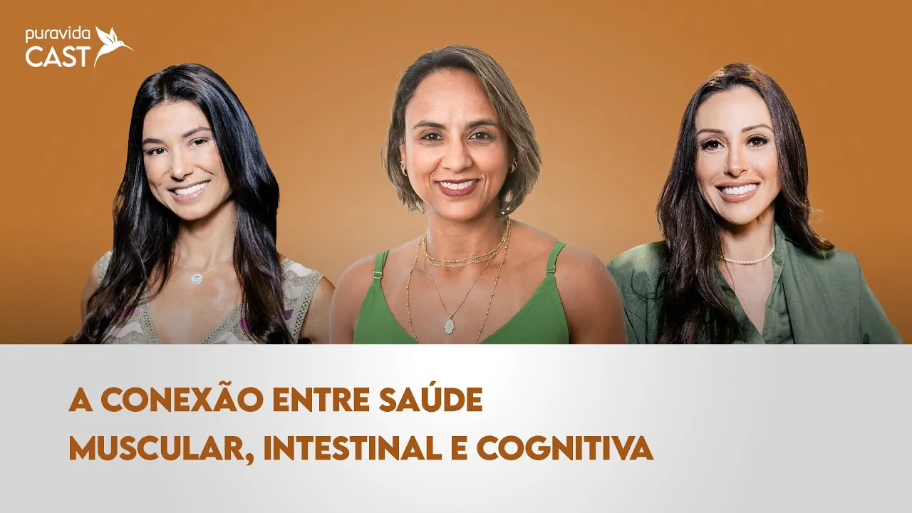 [Música] É incrível como tudo no corpo está interconectado sistemas altamente complexos como sistema digestivo e o sistema nervoso se comunicam e se influenciam de diferentes formas a saúde muscular pode afetar a saúde mental a saúde intestinal tem impacto na saúde muscular e cerebral e vice-versa a ciência cada vez mais desvenda e estuda essas conexões Olá seja muito bem-vinda muito bem-vindo eu sou Alessandra Feltrin Olá estamos começando mais um episódio do pura vida cast e neste Episódio vamos falar sobre a conexão músculo intestino e Cérebro um ótimo exemplo de como a saúde intestinal pode afetar a