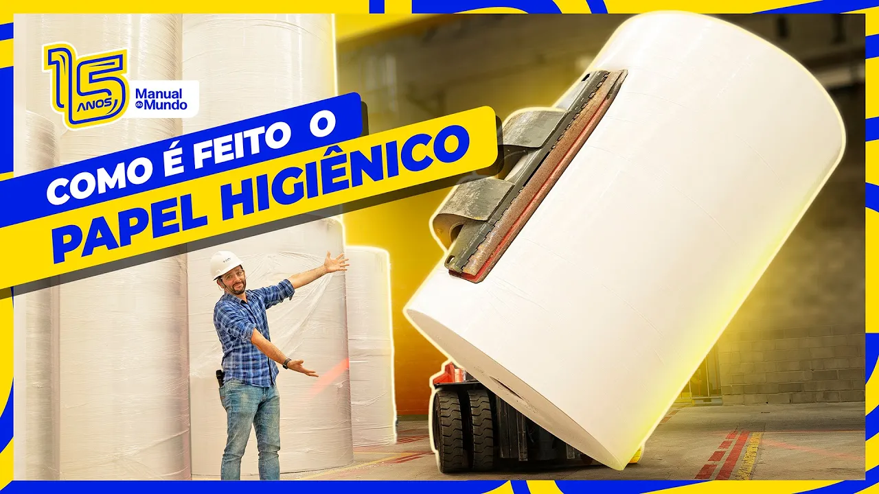 Hoje você vai descobrir como é fabricado o papel higiênico. Boravê? Quem que vai usar um rolo desse tamanho, né?
