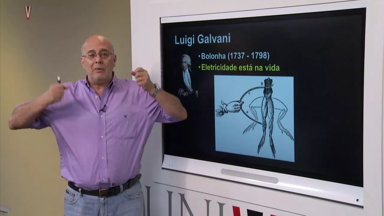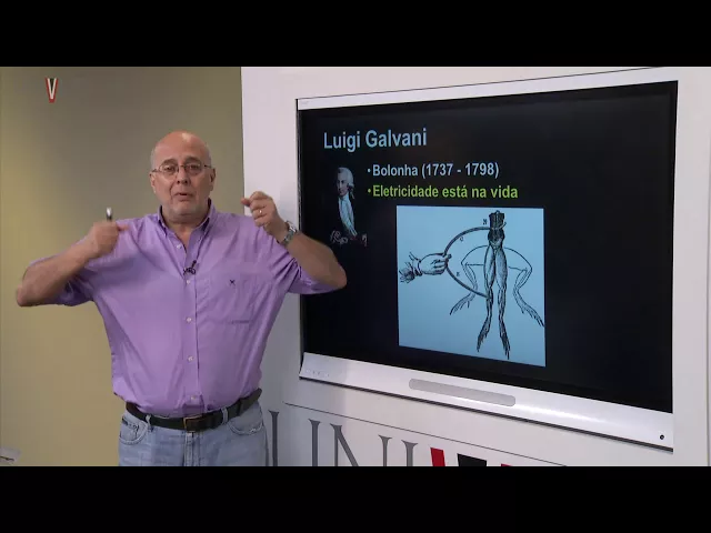 está ilustrado e colocava um sistema metálico em contato as pernas se contraiu e ele então galvani na verdade queria mostrar que a contração tudo isso era porque tinha eletricidade dentro do músculo da ram na verdade ele estava mostrando que a electricidade também tem muito a ver com a vida qualquer que seja o fenômeno elétrico que eles ainda estavam construindo o conceito tava também relacionado com coisas que acontecem na vida é incrível né keller cidade vai ser a mola que impulsiona os nossos movimentos no músculo e tudo isso então galvani foi importante nessa história e vem