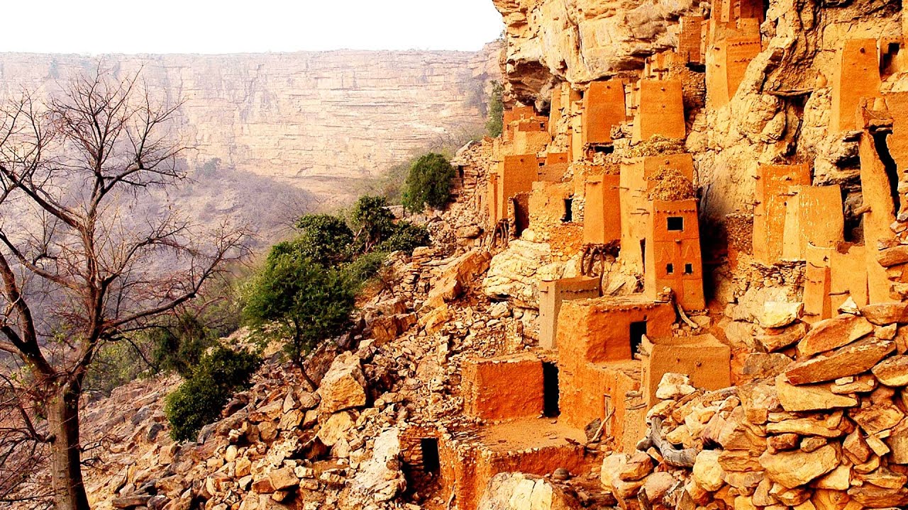 The bondiagara Cliffs land of the dogon in the south of Timbuktu is one of the most outstanding places in Mali due to its cultural and Architectural richness to walk along this long Cliff the presence of a guide who knows the area is required it stretches from bangkas to duenza in the heart of Dogan along the way he will encounter traditional dogon communities clinging to the cliffs these dwellings are built from a mixture of clay straw and cow or bulldung and they can hardly be seen from a distance are the most recognized in this area 23. in Mali there are different ethnic groups the largest with approximately 34 percent of the population are the Bambara who are mainly found in the central region of Mali and speak the Bambara language the Fulani around 14 percent are usually Shepherds and are found throughout the country as well as in other nations in West Africa in the west are 10 known for being good Traders the sanufo also 10 and especially inhabiting the South are usually farmers the malinke around nine percent are descendants of the Mali Empire and are mainly in the west and southwest of the country also there are the dogon sunrise Bobo and Touareg each of these ethnic groups has a language with Bambara being the most spoken in Mali although the official language of the country is French inherited from the colonial era 24. the dogons are one of the ethnic groups with the most peculiar cultural features such as masks and dances the kanaga is one of more than 70 masks that exist used in a ritual dance when someone important dies the olgon of the dogons is the spiritual and political leader of the village a religious figure who lives alone and in celibacy and cannot be touched the traditional dogon religion is a mixture of animism totemism and Shamanism their cosmogony centers on the Creator God Amma who created the world and all living creatures the dogon people also venerate their ancestors and Spirits called Nomo supernatural beings associated with water and fertility in addition some Dogan communities have adopted Islam or Christianity although they usually practice it by combining it with their traditional beliefs and practices 25.