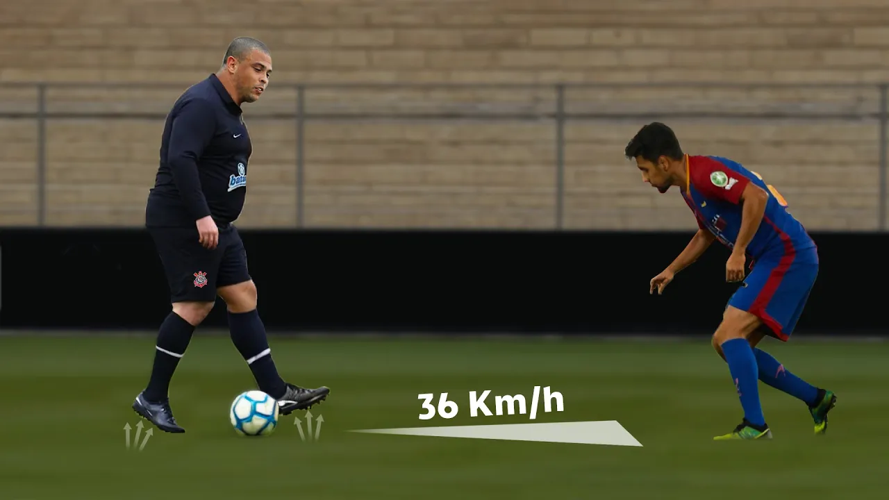 de futebol eu tô acima do peso mas parece que isso não impediu de exibir sua genialidade em campo um exemplo disso foi nesta partida onde Ronaldo atingiu uma velocidade final de impressionantes 36 km/h durante sua arrancada chegou a abrir uma diferença de 7 km/h em relação ao jogador do São Paulo mesmo em enfrentando Problemas no joelho e pesando mais de 100 kg a verdade é que Ronaldo contava com truque genial que revelarei a seguir para alcançar a tal velocidade ainda nesta partida o goleiro do São Paulo tentou alertar seus companheiros ter cuidado com ele é