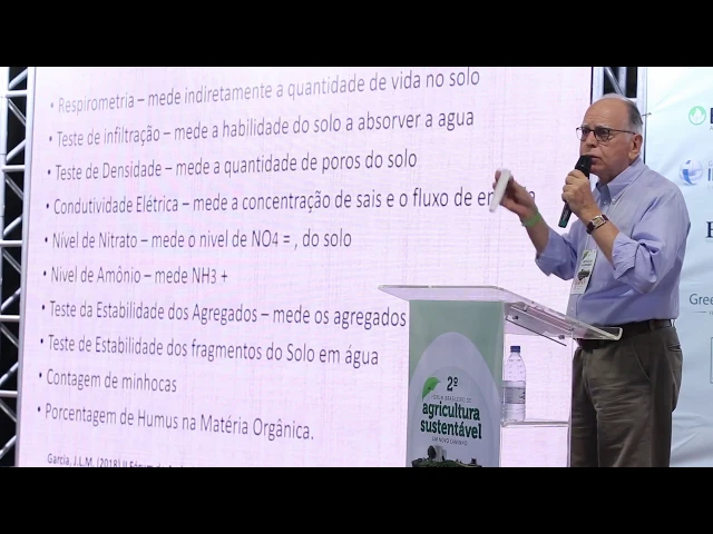 nós teremos agora daremos início ao painel com o tema agricultura sustentável o que estamos fazendo eo que está por vir nós convidamos inicialmente para proferir a sua palestra com o tema saúde do solo um novo conceito de fertilidade agrícola sustentável é com muita honra senhoras e senhores que este 2º fórum brasileiro de agricultura sustentável traz a brilhante palestra com o professor doutor josé luiz moreira garcia a agricultura biológica eu tentei definir uma nova forma de fazer agricultura que permite ao genoma que o genoma vegetal expresse toda sua plenitude favorecendo coletivas excepcionais de planta naturalmente saudáveis