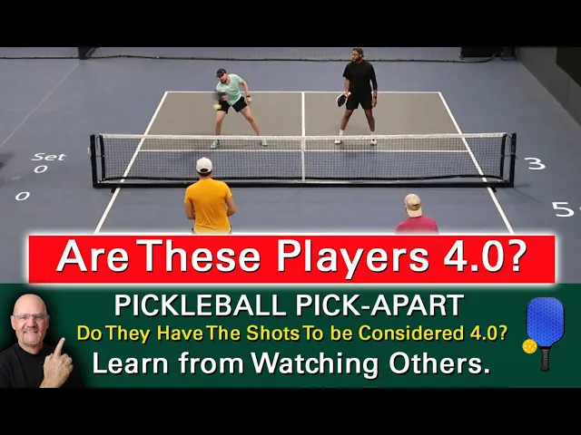 hello and thanks for tuning in to my YouTube channel pickleball pickup art my name is Rory and I take pickleball games off of YouTube and I pick apart the play on the court watching my videos will help make you a better pickleball player as my YouTube channel continues to grow I have viewers sending me videos of their pickleball games and asking me to pick them apart they also want to know what level I think they're at so here's a game played at the Atlanta pickleball Center posted on the new YouTube channel everyday pickleball they've asked me to pick it apart they consider themselves to be 4. 0 players and they want to see if I agree well USA pickleball has a list of 22 things that a player should be able to do to be considered a 4. 0 player if you want to know what those things are there's a link in the description below out of the 22 things there are two things that I keep an eye out for the first one is can a player consistently execute a third shot drop into the kitchen from the Baseline in order to move forward on the court the second one is can a player sustain a dink exchange at the net waiting patiently for a put away shot now there are players who play at the four-point level who are very one-dimensional they are mostly Power Players known as bangers and their short game or soft game is almost non-existent can they play at the four point level sure they can but can they win against teams that have both a power gain and a soft gain players who can hit a third shot drop players who can dig players who can reset the ball into the kitchen players who can stop a fire fight most of the time they cannot so let's see what kind of 4.