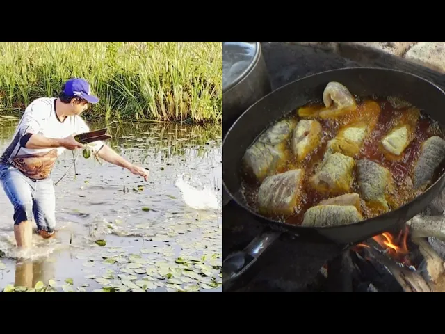 Acampamento de pesca, enfrentei muitos perigos para conseguir o frito