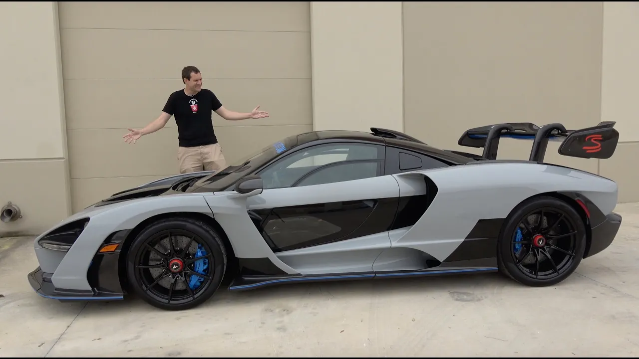 this is a mclaren senna and it is the latest mclaren supercar following up on the p1 that went out of production a few years ago the sena has it all almost 800 horsepower a 0-60 time of less than three seconds and an all-out focus on track performance this car also costs a million dollars if you're lucky enough to buy it new the current market value is more like one and a half to two million dollars and today i'm going to review it first a little overview now like i mentioned the sena followed up on the mclaren p1 and it's the latest in mclaren's ultimate series of crazy insane supercars the sena puts up similar numbers to the p1 and both are absurdly ridiculous looking and fast and insane and expensive the senate went on sale last year and production is going to be limited to 500 units for the entire planet now powering this sena is the same four liter twin turbo v8 that mclaren also puts in the 720s but while the 720s has only 710 horsepower and 570 pound-feet the senna has around 790 horsepower and 590 pound-feet and if the extra power wasn't enough to distinguish the sena from the 720s well there's also the look the look has been controversial to say the least some people say it's ugly with that massive rear wing and this ridiculous front overhang but mclaren says it's all functional for the very best in track performance i'll look a little closer at that stuff in a second for now back to the numbers 0-60 in 2. 8 seconds a top speed of around 210 miles an hour and a current market value of somewhere between one and a half and two million dollars and today i'm going to show you all of the quirks and features of the ultimate mclaren first i'm going to take you on a tour of the car then i'm going to get it out on the road and drive it and then i'm going to give it a dug score and for more of my thoughts on the senna click the link below to visit autotrader. com oversteer where i've also compiled a list of the most expensive british cars currently listed for sale on autotrader before i get started two quick thank yous for this video one is to mclaren houston where the owner of this car bought it the owner tells me mclaren houston was great when it came to ordering the car and so far for servicing it also my sincerest thanks to xpel here in san antonio who gave me this fantastic location to film this video this sena is fully wrapped in expel paint production film so nothing damages it and this car has so many weird cuts and gouges and panels that i can't imagine how long it took the expel people to wrap it anyway now on to the quirks and features all right i'm going to start the quirks and features of the senate with my three very favorite quirks and that means starting with the windows now i'm not talking about these windows because you in your car have windows that look similar to these although not quite the same because this one is bisected i'll get to that instead i'm talking about these windows yes what you see down here at the bottom of the door is not just a little black panel but rather a window a lower window to complement the upper window this door has two side windows and the lower window looks at the ground so when you drive around in your center you can look through the lower window and see the lane lines on the road or a little bit of the wheel of the car next to you as you drive down the street thanks to the lower door window which is just a fantastic quirk and next up we move on to my favorite quirk number two and that would be the front compartment now i'm going to show this to you and you probably think i'm going to open up this entire thing but it doesn't open instead only this little panel here opens but there's no latch inside the car to open it so you're thinking well how do you do it do you do it with a key fob no no you kind of feel your hand up about three quarters the way up on the left you push down and then it unlatches randomly then you pull off this piece of carbon fiber and that reveals a couple of caps these are fluid caps for the steering fluid the windshield washer fluid and the transmission fluid all under this compartment here when you're done you just kind of set it back in place push back down and then it's back in place the hidden method to open the hidden compartment with the hidden fluid caps in it but my very favorite mclaren sena quirk is in between the seats that's where you see a blue canister you're thinking well what could a blue canister be doing in the interior of this car ah well you see this car is designed for race track use so what you're supposed to do with that blue canister is fill it with water then you can run a tube from the canister to your mouth and then take drinks while you're on the race track the theory being that you don't want to have to take your hand off the wheel and reach over and pick up a water bottle and distract you while you're on the track so you just have a canister and a tube to your mouth and you can drink now you or i would probably call that a water bottle with a straw mclaren refers to it as the mclaren special operations push to drink system they need mclaren's special operations to come in and give them a water bottle with a straw but that is this blue canister in between the seats now before we go any further with the quirks and features of this car we need to discuss pricing for a second i have the window sticker for this car the base price is 958 thousand dollars but the total price is just shy of 1.