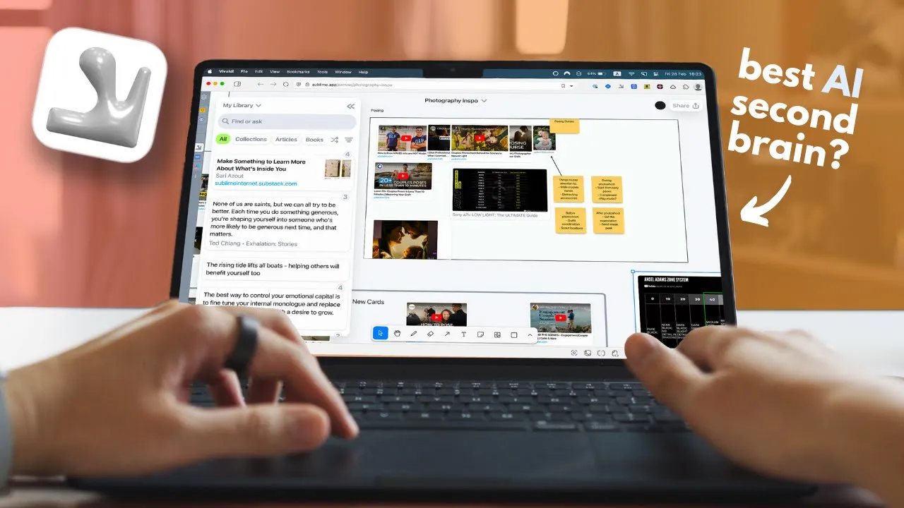 a step further with its visual canvas approach just like Pinterest let you organize pin into board Sublime let you arrange your saved items into canvases but unlike Pinterest rigid grid layout the canvases are much more flexible and useful in my opinion um they work like digital whiteboards where you can freely position resize and Visually organize your saved content however you want this spatial Freedom makes it much easier to see connections between ideas or compare different items side by side one of the coolest ways to use canvas is visual brainstorming for essays or articles when I'm