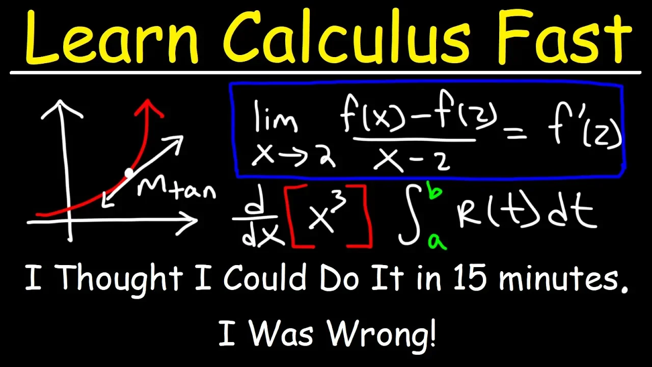 in this video i'm going to attempt to teach the fundamentals of calculus in a very short time so there's three areas of calculus that you want to be familiar with the first one is limits now limits help you to evaluate a function let's say if we want to evaluate f when x is equal to 2 but for some reason a function is undefined or we just can't do it well a limit will allow you to see what happens as x approaches 2. and so limits are very useful to find out what happens to a function as we approach a certain value now the second area of calculus that you want to know is derivatives so what are derivatives well basically derivatives are functions that give you the slope of an original function at some value so let's say if i have some function f of x the derivative of f of x is known as f prime of x now this function here will tell me the slope of this function at some x value it will give me the slope of the tangent line so derivatives are very useful for calculating rates of change now the third area is integration integration is basically the opposite of derivatives with integration you're basically finding the area under the curve integration is very useful for calculating how much something accumulates over time and what you need to know is that derivatives and integration they're opposites of each other for instance we said that the derivative of the function f of x is equal to f prime of x so this is the derivative of the original function f integral of f prime of x is f of x so this is the antiderivative or the integral of f prime so you can think of integration as finding the anti-derivative now let's begin our discussion with limits so let's say that f of x is x squared minus oh that is a terrible looking two let me do that again so let's say it's x squared minus four over x minus two what is f of two can we evaluate the function at x equals two well let's find out so if we plug in two two squared is four four minus four is zero and 0 over 0 what is that well we can't figure this thing out so that's indeterminate therefore we can't evaluate the function at x equals 2. and so this is when limits become important so if we can't find out the value of the function when x is 2 can we find out what the function will do as x approaches 2.