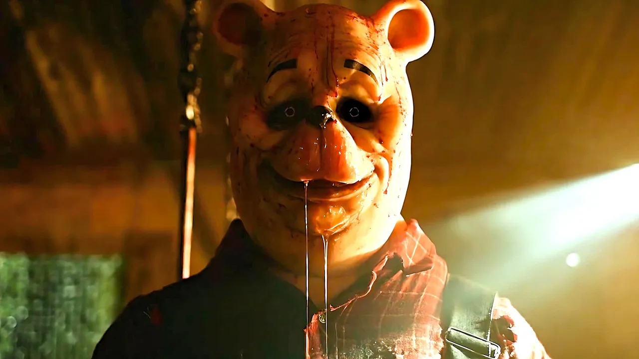 Unfortunately, as she tries to shoot, the gun is empty, so the woman backs away only for her to bump into Pooh. After dropping the woman on the floor, Pooh pours honey on her face. Then, Piglet sits down to devour her face.