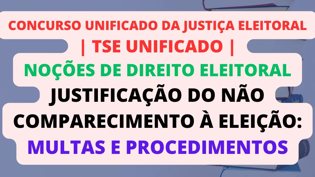 justificação do não comparecimento à eleição multas e procedimentos a resolução do TSE número 23659 de 2021 aborda a justificação do não comparecimento à eleição e as providências e penalidades decorrentes dessa ausência de acordo com a resolução o eleitor ou a eleitora que deixar de votar e não se justificar dentro dos prazos estabelecidos incorrerá em multa que será arbitrada pelo juiz ou pela juíza eleitoral essa Mult pode ser aplicada nos seguintes casos se o eleitor não se justificar nos prazos de 60 dias contados do dia da eleição ou de 30 dias contados do seu retorno ao