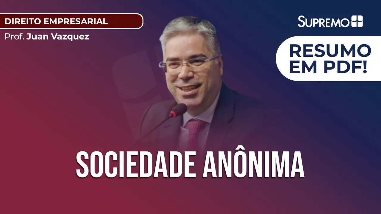 [Música] Olá seja muito bem-vindo a mais uma aula de direito empresarial aqui no curso supremo o tema da aula de hoje será sociedade anônima nós vamos aqui abordar os principais aspectos da sociedade anônima luz da Lei 64 0476 e também da linha 38576 e ali da cvm Então vamos começar o nosso estudo sobre a sociedade anônima lembrando algumas características que são essenciais a esse tipo societário começando então pelo próprio artigo primeiro estabelece a responsabilidade do acionista no caso de uma sociedade anônima o acionista ele tem uma responsabilidade que é limitada ao preço de emissão de