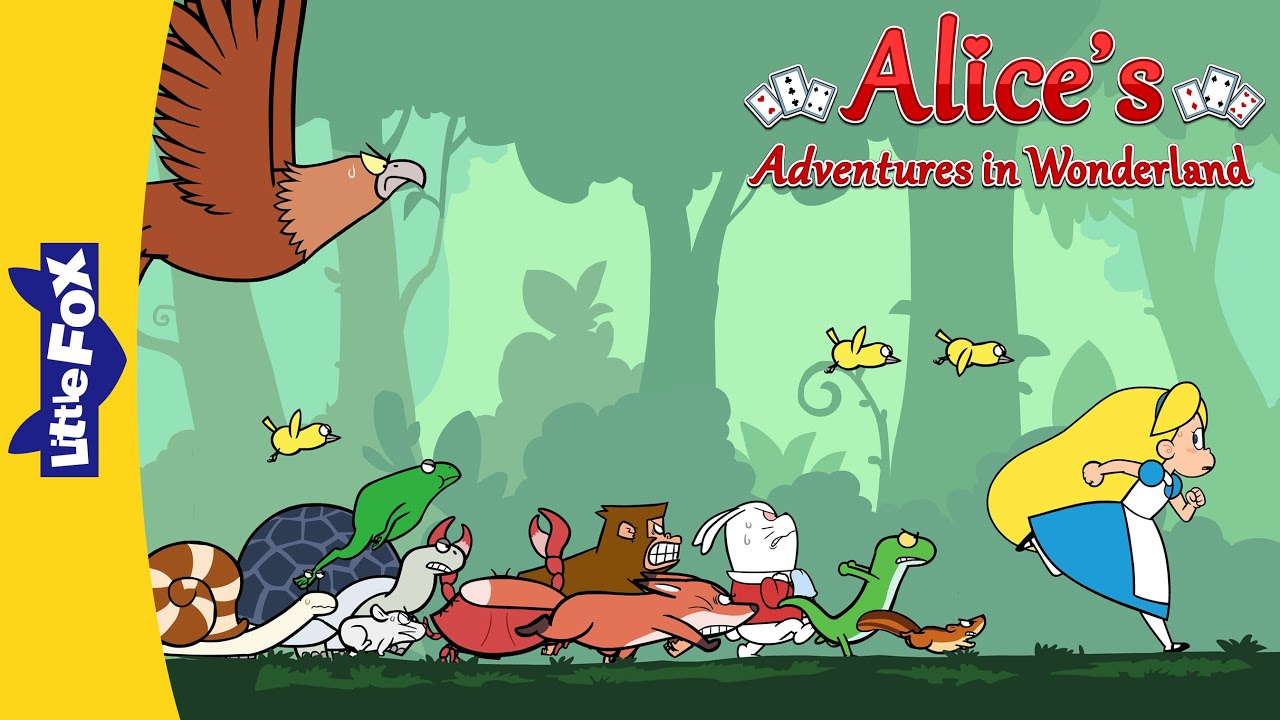 middle of the hall how will I ever get out of here she [Music] cried Alice's Adventures in Wonderland chapter 2 a strange [Music] drink looking around the dimly lit Hall Alice spotted a glass table on top of it lay a tiny gold key I wonder if this will unlock a door Alice said as she picked up the [Music] key she tried the key in every door on both both sides of the [Music] hall it was too small but Alice didn't give up she tried again and this time she discovered a small curtain H this wasn't