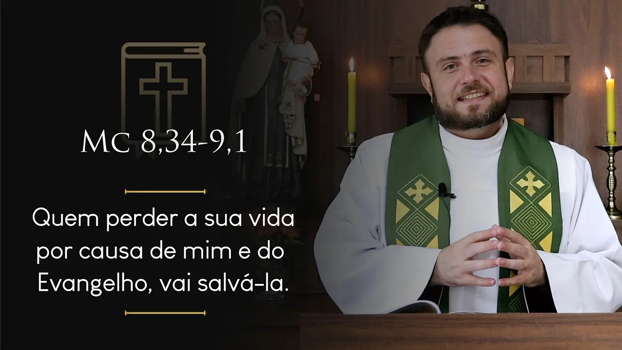 ter parte aqui na casa no santuário de São José desde já Deus abençoe E recompense sua generosidade sua paciência também comigo por esses dias até lá porque eu vou estar passando por aqui para pedir também ai Vamos lá gente evangelho de hoje da sexta-feira da sexta semana o tempo comum Marcos Capítulo 8 começa no Versículo 34 e vai até o versículo primeiro do Capítulo 9 diz assim naquele tempo chamou Jesus a multidão com seus discípulos e disse se alguém me quer seguir renuncie a si mesmo tome a sua cruz e me siga pois quem quiser