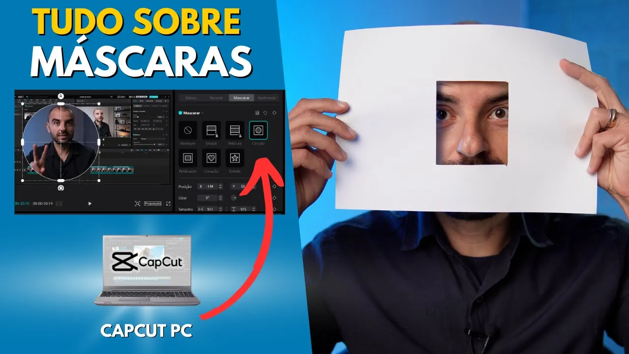 aqui para esse que é ele através do vídeo como se fosse um buraco de verdade mesmo então se você clicar aqui ó tirar o reverso tá vendo ele vai mostrar a parte de cima Então vou selecionar aqui o recorte que eu quero fazer eu volto aqui em básico e posso selecionar e posicionar no local desejado se você vier aqui em mascarar Olha só você consegue colocar também um círculo tá vendo ele criou que um círculo eu vou posicioná-lo na parte que eu quero que é do meu rosto tá vendo vem aqui em básico e posso