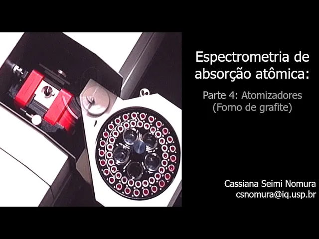 o Olá meu nome é Cassiana docente no instituto de química da Universidade de São Paulo pesquisadora na área de química analítica e uma das coordenadoras do grupo de análise e pesquisa em espectrometria o grave as três últimas aulas sobre a absorção atômica apresentamos os fundamentos instrumentação de um espectrômetro de absorção atômica e detalhamos o atomizador com chama hoje apresentarei a vocês um outro atomizador muito empregado em absorção atômica em forno de grafite se você ainda não assistiu as três primeiras aulas desse assunto é esse tempo não corre lá vou deixar os links na descrição desse vídeo e quando o atomizador empregado na técnica de absorção atômica é o forno de grafite o método analítico recebe o nome de espectrometria de absorção atômica com forno de grafite e tem como acrônimo gf-aas que vem do seu termo em inglês Blast furnace Atomic absorption spectrometry é muito comum encontrar na literatura o uso do termo espectrometria de absorção atômica com atomização eletrotérmica o ET AAS do Inglês eletrotermo ou Atomic absorption spectrometry como sinônimo da espectrometria de absorção atômica com forno de grafite pois o forno de grafite É um tipo mais comum de atomizadores eletrotérmicos e representa aqui um diagrama de espectrômetro de absorção atômica com forno de grafite temos a lâmpada de cátodo oco que emite radiação específica de intensidade fizeram que passa pelo atomizador nesse caso o forno de grafite onde os átomos gasosas no estado fundamental são formados e que Portanto o absorvem a radiação a radiação não absorvida ou transmitida segue para o monocromador onde é separado e selecionado chegando finalmente ao detector onde é convertido em sinal elétrico vocês vão perceber na aula de hoje que o sistema de introdução de amostras bem como o processo de formação dos átomos é um pouco diferente da espectrometria de absorção atômica com discutida na aula anterior a questão uma imagem do atomizador e sistemas de introdução de amostras um espectrômetro de absorção atômica em forno de grafite a introdução da mostra é feita por um alto amostrador que leva alíquotas da solução organizada a bandeja para o interior do Forno de grafite Onde está depositado um tubo de grafite um capilar leva a solução para o interior do tubo de grafite por meio de uma amostragem discreta reparem que a eficiência de transporte é de 100 porcento diferente do que acontece com absorção atômica com chama no qual eficiência de apenas cinco porcento uma vez dentro do tubo de grafite a solução passa por aquecimento Até formar átomos que absorveram a radiação aquisição do sinal em forno de grafite é feita pela medida da área de pico e não pela altura como ocorre na chama isso acontece pois Diferentemente do espectrômetro de absorção atômica com chama Conde amostragem a contínua aqui amostragem a discreta é mas como ocorre o processo de atualização no forno de grafite a grande vantagem do Forno de grafite é que é possível realizar o controle da temperatura do atomizador de modo a planejar um programa de aquecimento enquanto o atomizador com chama a solução já entra em contato com a chama a 2. 300 ou 3 mil graus Celsius dependente da chama e atualização ocorre quase que instantaneamente no forno de grafite a formação dos átomos ocorre de forma controlada e gradual o programa de aquecimento ocorre normalmente em cinco etapas de temperatura que aumentada de forma gradual e controlada uma vez que a solução é depositada dentro do tubo de grafite inicia-se um aquecimento Brando Para que ocorra de solvatação dessa solução essa etapa chamada de secagem posteriormente a temperatura é aumentada um pouco mais para que haja a pirólise do resíduo sólido que ficou dentro do tubo O objetivo dessa etapa chamada e é destruir o máximo da Matriz eliminando os concomitantes e formaram precursor atômico ou seja o composto o que será dissociado para formar o átomo gasoso no estado fundamental ao final da pirólise é feito um aquecimento brusco no tubo de grafite de de forma que permita a formação dos átomos gasosas no estado fundamental também chamado de nuvem atômica é nessa etapa chamada atualização que a radiação é excedida e o sinal de absorção atômica é obtido por fim temos a etapa de limpeza do Qual a temperatura elevada para que os resíduos sejam dissipados após a etapa de resfriamento o tubo de grafite está pronto para receber a próxima a língua tá todos os detalhes de cada etapa da primeira etapa secagem emprega-se uma temperatura entre 80 e 200 graus Celsius dependendo do solvente que se pretende eliminar e é uma etapa que dura em média 5 a 10 segundos né ser tava como objetivo é arrastar os vapores do solvente para fora do tubo de grafite deixa se passar um pequeno fluxo de argônio por dentro do tubo ao final dessa etapa é formado um filme sólido no tubo de grafite a etapa seguinte a pirólise é uma das mais importantes pois tem a função de destruir eliminar os concomitantes da Matriz as temperaturas comumente utilizadas variam entre 250 e 1. 600 graus Celsius pois esse depende da matriz e do analito a duração varia entre 10 e 20 segundos é importante ressaltar que a temperatura usada não pode ser tão alta a ponto de evaporar o analito nessa etapa o fluxo de argônio também passa por dentro do tubo para auxiliar não arraste dos vapores residuais o final dessa etapa fica no tubo apenas os compostos inorgânicos em geral óxidos e cabritos que deverão ser e na etapa seguinte a atualização é na atualização que a medida do sinal de absorção é feita Pois é aqui que os átomos gasosas no estado fundamental são formados para isso o tubo é aquecido muito rapidamente para que a nuvem atômica seja formada de uma única vez essa nuvem deve permanecer dentro do tubo EA nesse momento que a radiação excedida e a medida 