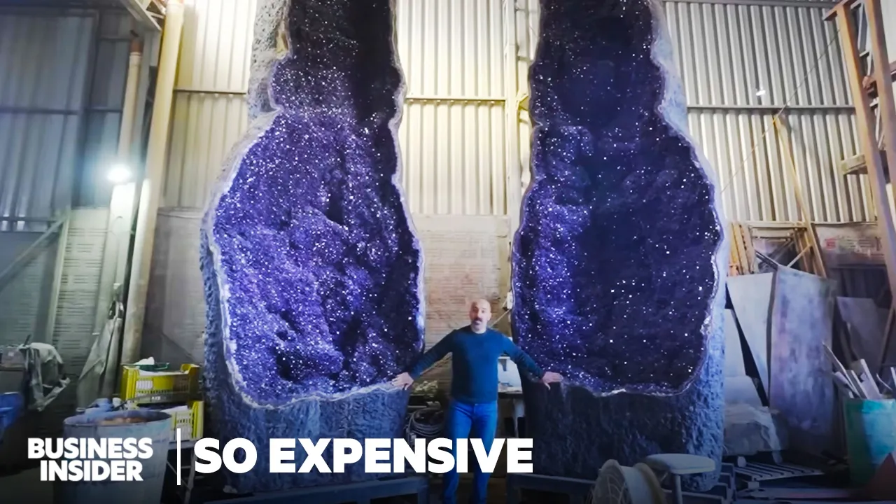 keep doing for now [Music] weighing in at 26 tons are about four African elephants worth of Crystal and stone this massive geode costs almost $1 million amethyst isn't particularly rare in fact it's a type of quartz one of the most common minerals on Earth but the geodes that miners laboriously excavate fromes mine in Aras Uruguay can still cost a pretty penny so how much does size matter and what else makes amethyst so [Music] expensive hundreds of years ago amethyst was considered as valuable as rubies and sapphires but in the 1800s massive deposits were discovered in
