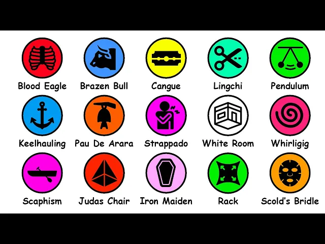gruesome method where the skin is removed from the body often while the victim is still alive this extreme form of torture was used to cause intense slow pain and suffering eventually leading to death through shock or infection Judith chair a torture device featuring a pyramid-shaped seat where the victim was placed at the top with ropes used to lower and suspend their body weight onto the sharp Apex the chair would slowly rip the person apart Iron Maiden a tall coffin-like chamber with spikes on the inside that would pierce the person placed inside once it was closed