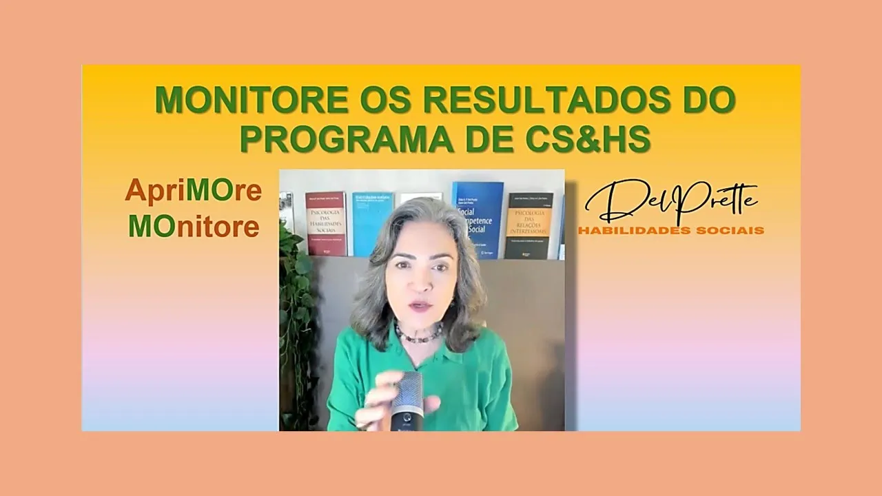 [Música] então agora nós vamos focalizar a segunda parte deste módulo de monitoria monitorar todo o seu programa de competência social e habilidades sociais nós já falamos sobre monitorar o processo agora nós vamos falar sobre monitorar os resultados é essa monitoria complementa a de processo porque agora você vai observar com mais atenção não o como ocorreu toda a intervenção Mas aonde você chegou o que Você atingiu com a sua intervenção com seu programa de competência social na verdade o que você tá focando agora é a evolução do seu cliente ao longo ao final e depois da