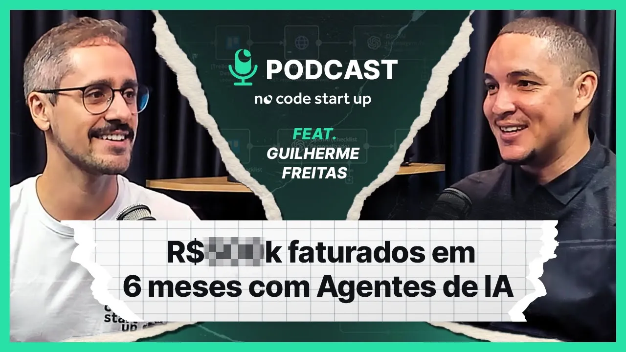 Guilherme, desde pequeno tem a mentalidade empreendedora. Trabalhava com revenda e manutenção de celulares e quebrou devido a problemas de gestão. Ele não desistiu de empreender e percebeu que precisava estruturar um modelo de negócio com escala de crescimento e com baixo custo. Ele encontrou essa solução na tecnologia. Começou sem nenhum tipo de experiência em automações e em 4 meses conseguiu Bater R$ 100.000 R$ 1.000 de faturamento. Salve salve pessoal, Mateus Castelo da Nocode Startup e hoje eu tô aqui com grande aluno de sucesso, o Guilherme. E antes de começar esse podcast, eu já quero dar um