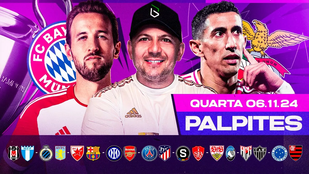 fala time para quem não me conhece eu sou o Marco do canal Boleiros chips e nesse vídeo eu vou trazer para vocês os melhores jogos e palpites de futebol da quarta-feira dia 6 de novembro agora sem mais enrolação vocês já sabem só tá vinheta [Música] prepara prepara [Música] a Time quarta-feira rodada do jeito que a gente gosta Champions League Liga Europa campeonato brasileiro e claro eu trouxe o melhor para vocês então se puder deixa o like faz aquele comentário Compartilha o vídeo com amigo para fortalecer o nosso trabalho se você chegou aqui pela primeira vez ou caiu de paraquedas se gostar do canal e do conteúdo depois se inscreve lembrando 200 ou mais comentários vídeo de amanhã além das análises Eu também trago um bilhete e uma binguetes iio dia3 Liga Europa beicas versus malmo Safadão time para mercado de resultados Eu Não Confio Em nenhuma das duas equipes tá legal agora pré-live mercado de gols pode ser interessante a probabilidade pra gente ver dois gols aqui é de 80% e eu já vou mostrar para vocês então pré-live entrada mais conservadora mais de 1 gol e me 1,20 de od para uma dupla ou para compor bilhete correndo um pouco mais de risco ambas marcam od de 1,60 probabilidades na tela e vamos lá tabela de probabilidades na tela jogo para mais de um Gol E5 80% mercado de escanteios também pode ser interessante as duas equipes com boas médias tá beicas 6. 6 média de cantos em casa e o malmo 4. 8 time final do segundo tempo se essa partida ainda não estiver resolvida de repente empatando aqui e os dois times buscando a Vitória canto asiático canto limite ó É bem interessante tá 90% para cada lado então final do segundo tempo o jogo ainda não está resolvido e a partida está em alta intensidade canto asiático canto limite é bacana cartões beicas 2.