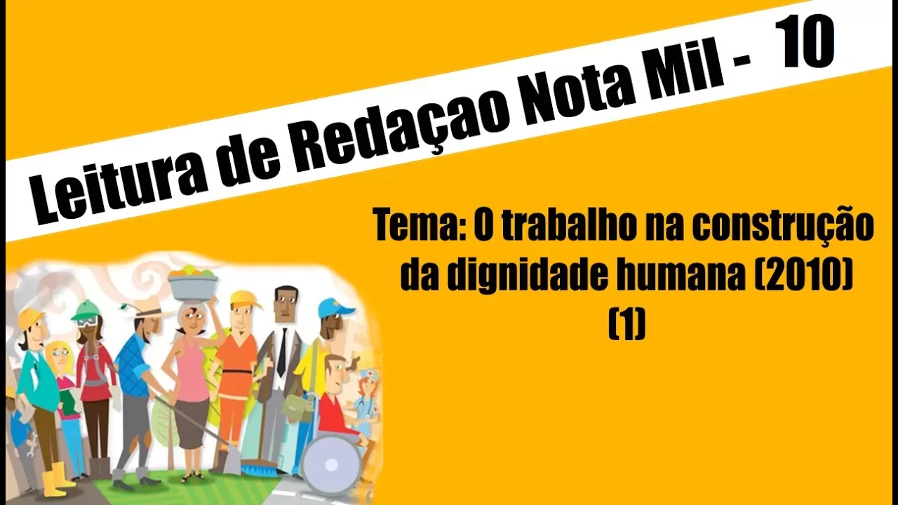 olá pessoal - o canal net data nesse vídeo vamos dar continuidade à leitura de redação nota mil agora vamos ler uma redação com o tema o trabalho na construção da dignidade humana que foi o tema da redação do enem de 2010 então vamos lá depois de inúmeras mudanças na sociedade vive se hoje num momento em que há por parte de muitas pessoas uma crescente busca pela realização profissional para elas a profissão muitas vezes pode ter um grande significado na construção de sua identidade há porém aquelas pessoas que sem ter escolha aceitam qualquer trabalho como forma