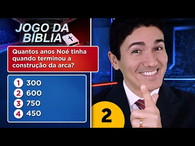 meio da ministração Paulo então parou que ele estava fazendo desceu até o lugar onde aquele jovem estava e o ressuscitou depois ele voltou a pregar Olha o quanto ele estava cheio do Espírito Santo em e a próxima pergunta valendo 50 pontos essa com quantos anos Noé tinha quando terminou a construção da arca a primeira opção diz que ele tinha 300 anos a segunda opção afirma que Noé tinha 600 anos quando terminou a construção a terceira opção diz que Noé tinha 750 anos e a quarta opção diz que ele tinha 450 anos de idade quando entregou
