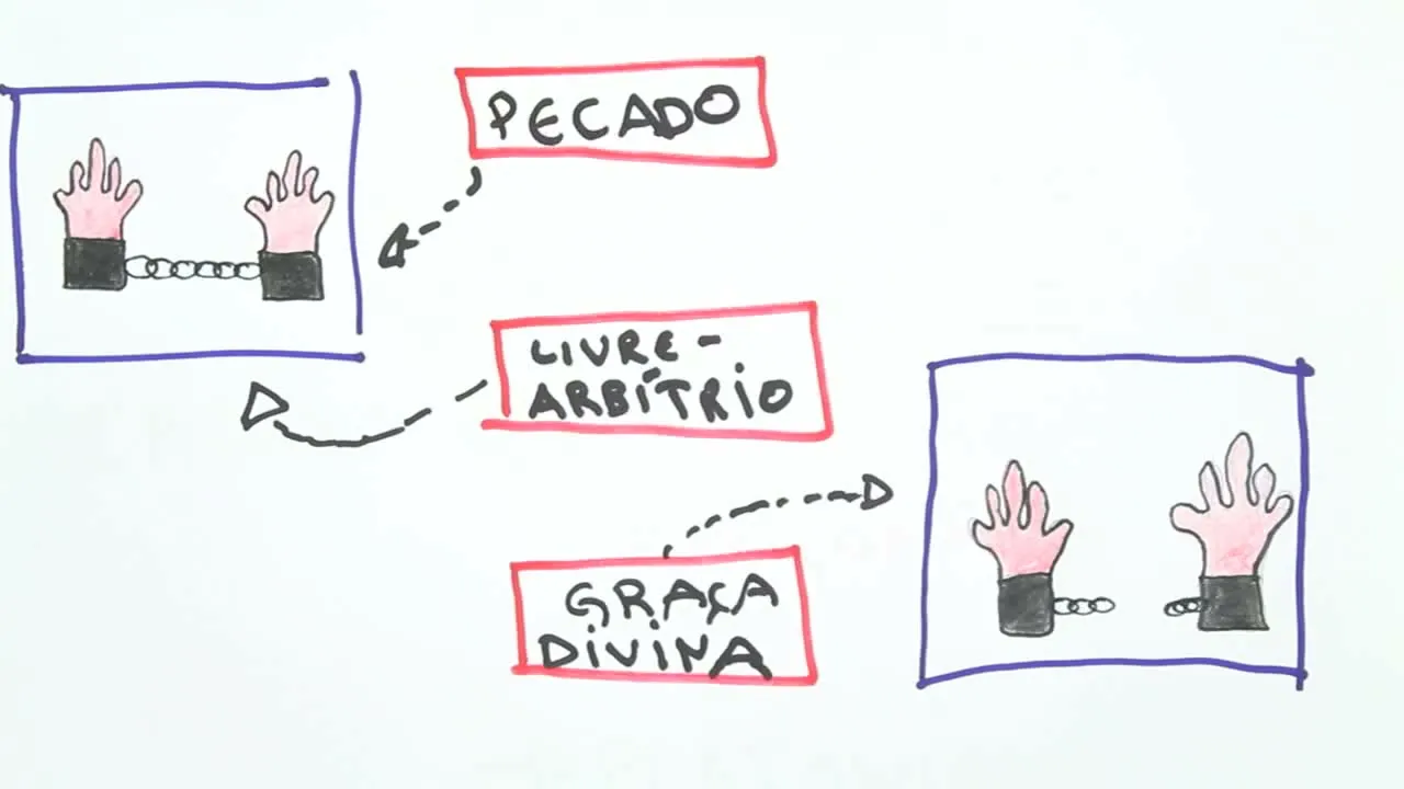 o livre arbítrio o que que é pro Santo Agostinho esse livre arbítrio é fazer aquilo que a alma e o corpo Aliás fazer aquilo que o corpo deseja e não o que a alma e sua imagem a Deus está e dizendo para ser feito então o livre arbítrio o pecado estão relacionados à escravidão mas existe uma questão que está relacionada a liberdade que questão é essa é a graça de Deus a graça Divina a teoria mais importante e mais difundida do da idade média durante o período da patrística que é a qual corresponde o Santo