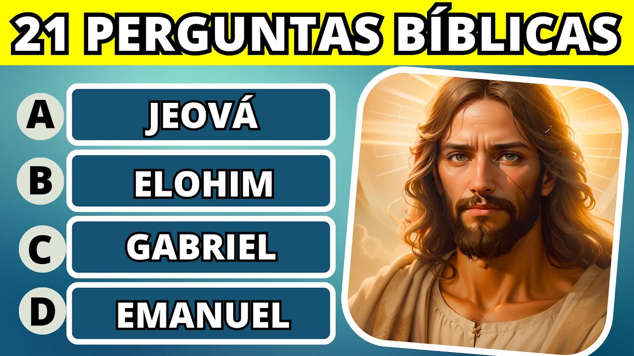 Olá seja muito bem-vindo ao Enigma bíblico e no vídeo de hoje nós vamos responder 20 perguntas fáceis sobre Jesus Cristo A última é a bônus Essa é um pouquinho mais difícil mas eu tenho certeza que você vai conseguir acertar no final desse desafio escreva nos comentários Quantas você acertou e se você não for inscrito no canal inscreva-se curta e compartilhe para que nós possamos fazer muitos mais desafios como esse vamos começar desafio de número um Jesus nasceu em qual cidade letra A Belém letra B Jerusalém letra C Judá ou letra D Samaria você tem 10
