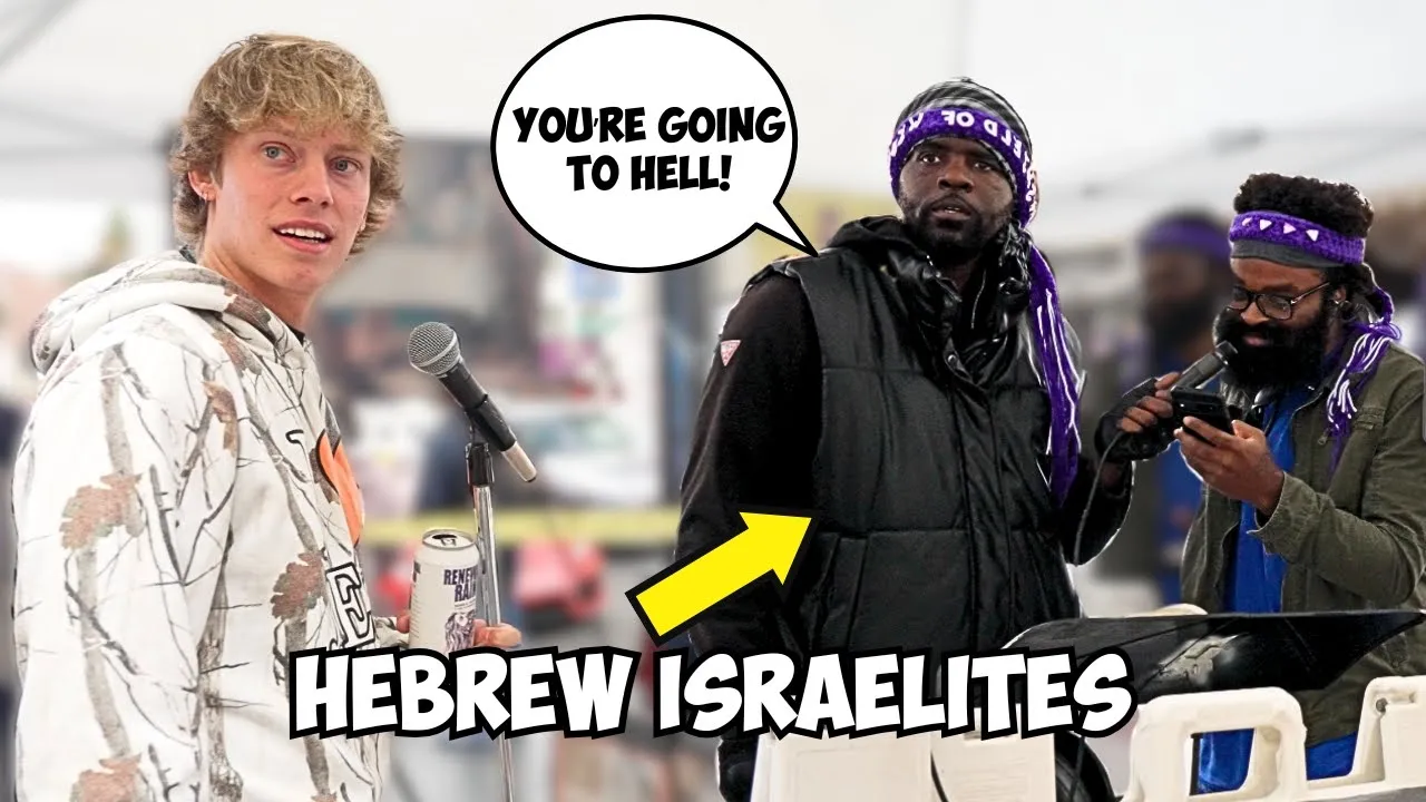 by the way we don't shake hands maybe maybe at the end of this at the end of this we'll see how this goes we don't shake hands well we'll see at the end of this maybe why at we going to see how what happens ask a question all right we'll see maybe we can get a handshake let's see wa so so what exactly do you believe in what we believe in right so if you look at this sign right here we believe that the people on the sign are the 12 tribes of Israel and they