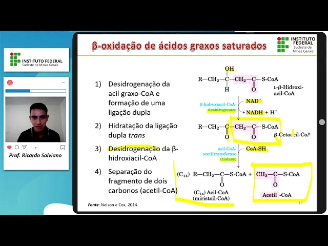 onde no final ele perdeu esses dois carbonos aqui que olha Tá certo Olha que não entrou uma molécula de cozinha aqui novamente para o local então a diferença desse componente aqui para aquele Inicial é que ele perdeu dois caminhos Ok então eu tinha ácido palmítico no início e agora eu tenho a o assumir no final ou seja perdi dois carmons na forma de assistir ocorre Beleza então aqui eu tentei passar para vocês essas quatro etapas que acontece na Neto oxidação só recarga sobrou aqui olha 14k vamos lá ainda o que que vai acontecer esse conforme