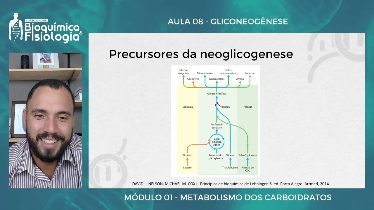 aprender na próxima aula a gente falou bastante sobre o metabolismo eh da glicose né a gente falou sobre as vias sobre a glicólise sobre a gliconeogênese a gente acabou de falar na próxima aula a gente vai end é outra via Porque além do seu papel energético né basicamente a glicose tem um papel importante na síntese de outros compostos né a gente falou sobre isso quando a gente falou sobre glicólise Então a gente vai entender como a glicose é utilizada numa via alternativa por exemplo para gerar ribose né E desoxirribose que são açúcares que estão presentes