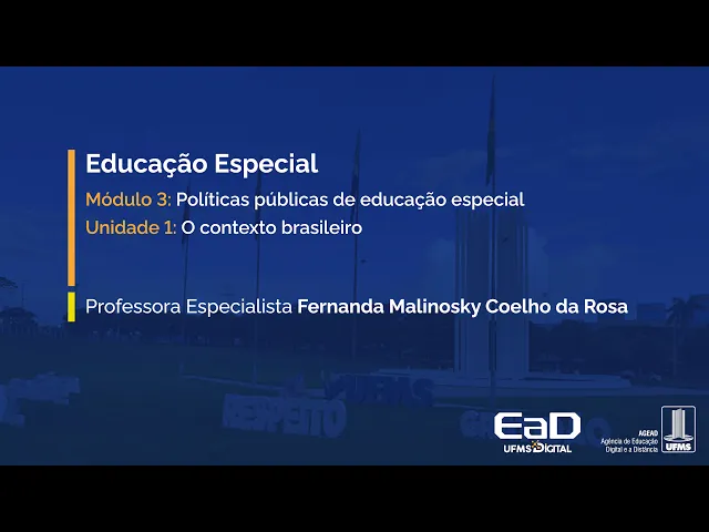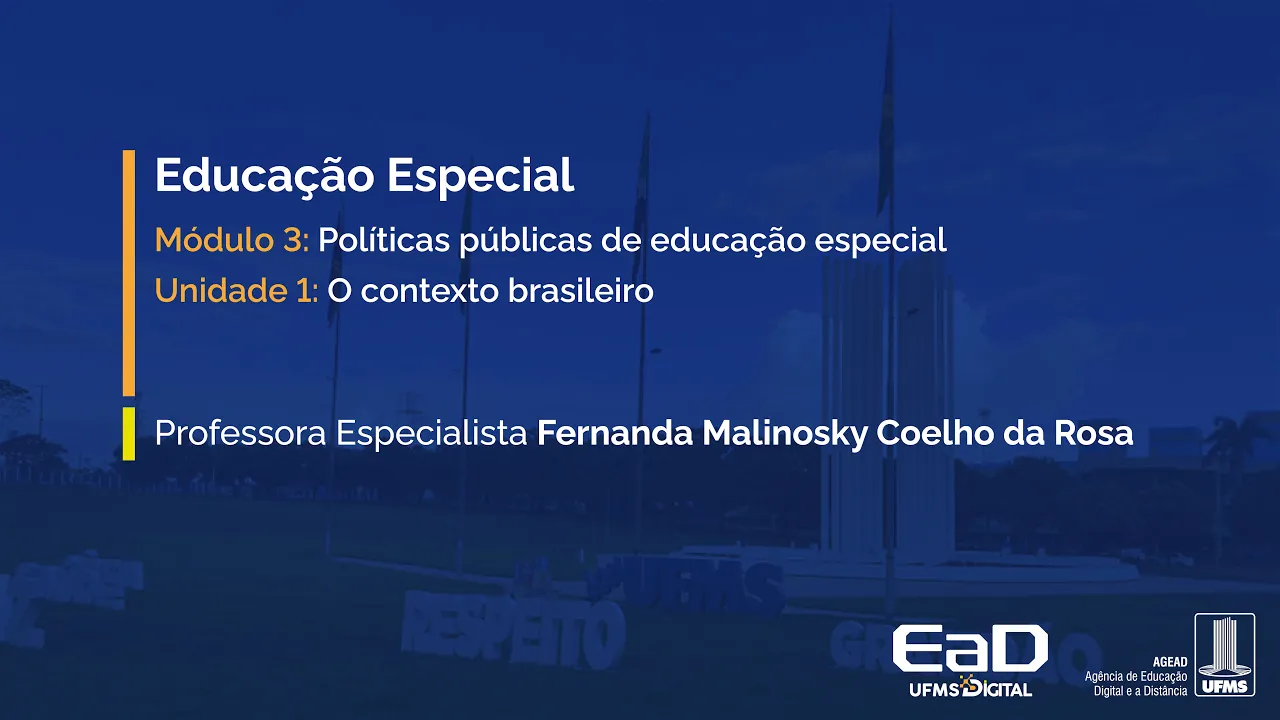 [Música] Olá a todos eu sou a professora Fernanda Malinoski estou aqui com vocês mais uma vez para começarmos um novo módulo esse módulo nós vamos falar um pouco sobre políticas públicas e nesse primeiro primeira parte nós vamos falar sobre o contexto brasileiro vocês viram os módulos anteriores eu conversando um pouco com vocês sobre algumas legislações brasileiras falei até de algumas internacionais agora eu vou colocar algumas dessas legislações dentro de um contexto de políticas públicas E para isso eu preciso dizer o que são essas políticas públicas né na educação elas correspondem a medidas tomadas no âmbito