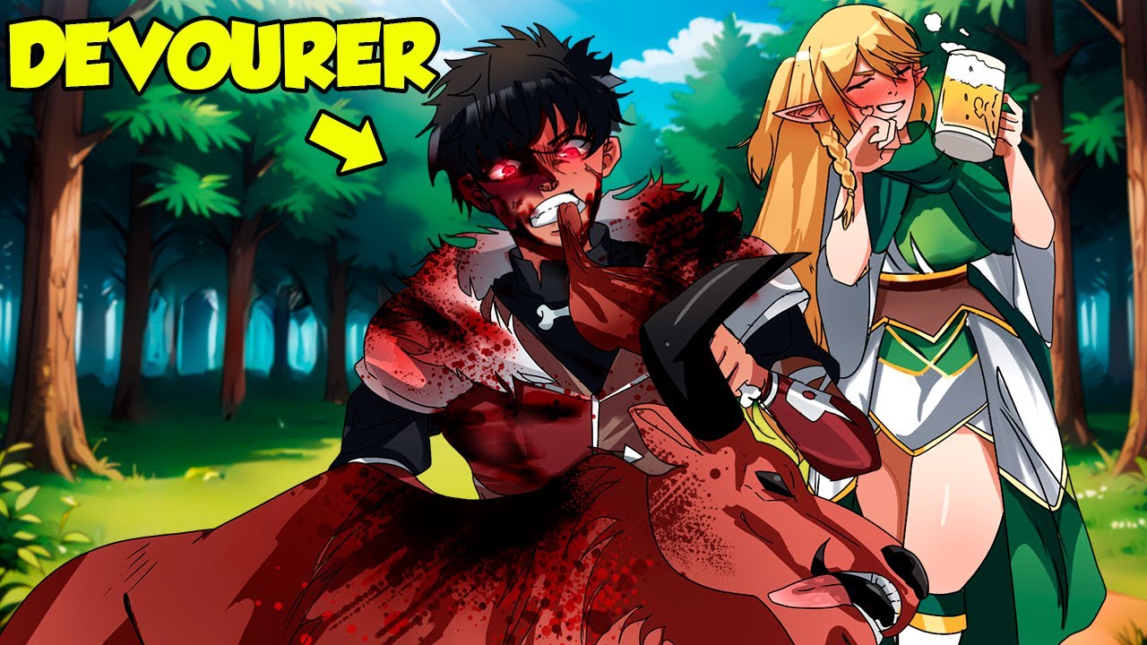 on his miserable life until he started hearing a voice saying listen well child no matter how hard or painful your life is you must never give up with those words the protagonist stands up With hatred in his heart and begins to brutally Devour the Minotaur as he eats the monster's flesh he thinks that if an exhausted human eats the meat of a monster rich in Mana the Mana particles would invade his body transforming him into something worse than death but the protagonist had nothing left to lose and starts tearing into the monster to regain his