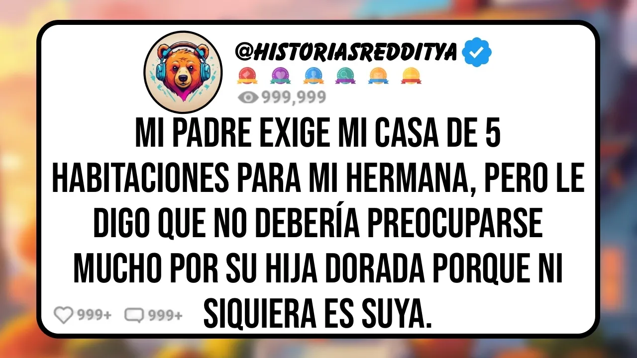 mi padre exige mi casa de cinco habitaciones para mi hermana pero le digo que no debería preocuparse mucho por su hija dorada porque ni siquiera es suya he estado reflexionando sobre esto durante las últimas horas y no le he contado a nadie cómo me siento porque tal vez solo estoy exagerando luego recordé que este espacio existe donde puedo venir y pedir un poco de consejo Así que aquí estoy esperando que puedas darle sentido a todo lo que estoy a punto de contarte porque es mucho Tengo 31 años Soy hombre y trabajo como desarrollador inmobiliario cuando