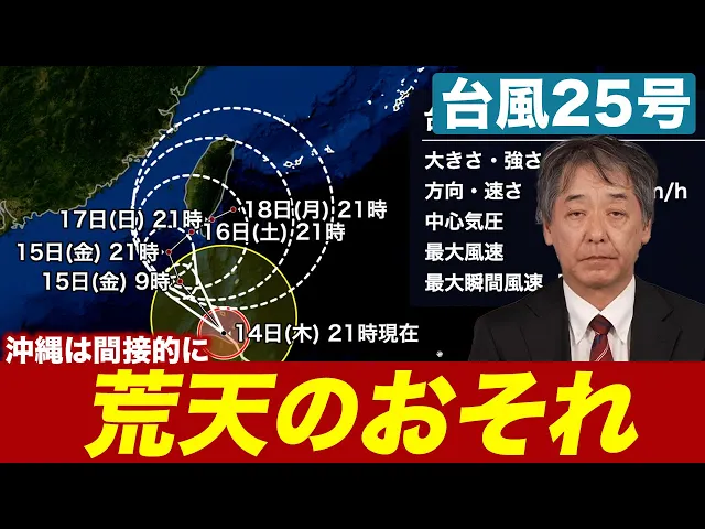 【台風情報】台風25号(ウサギ)の間接的な影響で沖縄は荒天のおそれ(14日22時更新)
